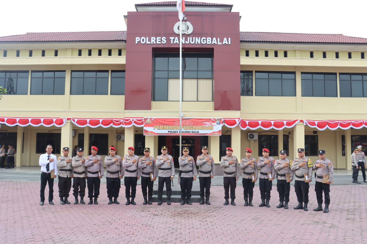 Pemberian penghargaan tersebut dilakukan Kapolres Tanjungbalai dilapangan apel Polres Tanjungbalai pada hari Jumat (15/8) pukul 08.00 WIB.