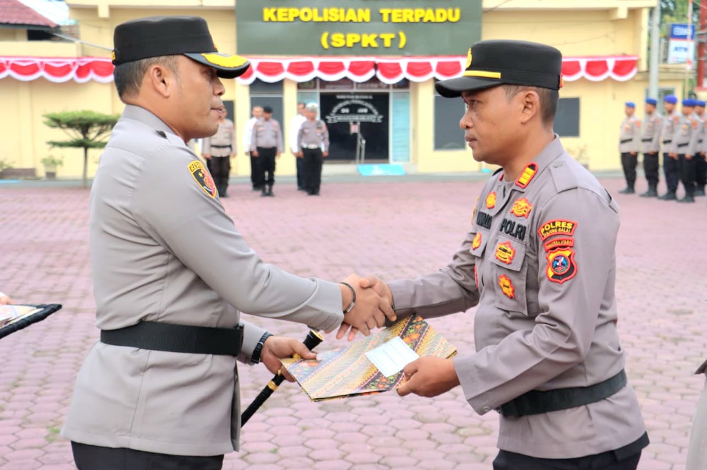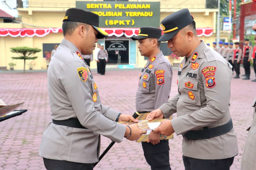 TANJUNGBALAI – Kapolres Tanjungbalai AKBP Welman Feri, SIK, MIK memberikan penghargaan kepada 15 orang personilnya sebagai bentuk apresiasi dari pimpinan terhadap personil atas keberhasilan dalam melaksanakan tugas.
