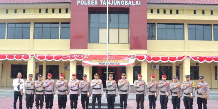 Pemberian penghargaan tersebut dilakukan Kapolres Tanjungbalai dilapangan apel Polres Tanjungbalai pada hari Jumat (15/8) pukul 08.00 WIB.