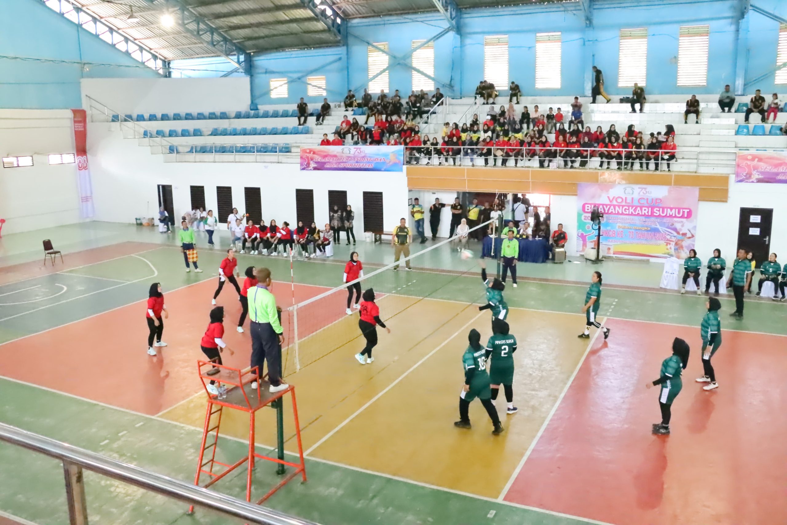 Dalam rangka memeriahkan Hari Kesatuan Gerak Bhayangkari (HKGB) ke-73, Polres Tebing Tinggi turut andil melakukan pengamanan dan mengikuti pertandingan kejuaraan Voli Cup Bhayangkari Sumut Zona II yang digelar di GOR Asber Jalan Gunung Leuser, Kelurahan Tanjung Marulak, Kecamatan Rambutan, Kota Tebing Tinggi, Jumat (8/8/2025).