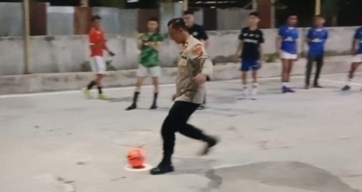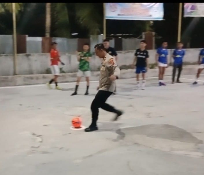 TASLABNEWS, ASAHAN-Kapolsek Kota Kisaran Iptu Syamsul menghadiri pembukaan Turnamen Futsal tingkat umum dan pelajar SMU sederajat di Dusun 7 Desa Meranti, Kecamatan Meranti, Kabupaten Asahan, Sumatra Utara, Jumat (15/8/2025) jam 21.30 wib.