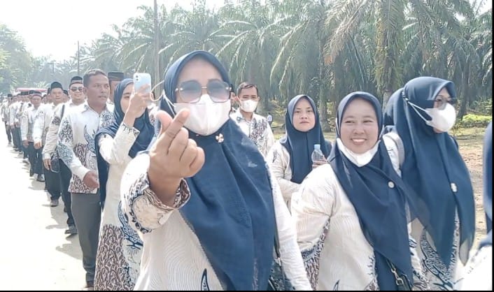 ASAHAN – Pemerintah Kecamatan Meranti beserta perangkat dan Kepala Desa se-Kecamatan Meranti antusias dalam mengikuti kegiatan Pawai Ta’aruf Pembukaan festipal seni Qasidah (FSQ) Tingkat Kabupaten Asahan tahun 2025 yang dilaksanakan di Desa Perkebunan Pulahan Kecamatan Air Batu, Kabupaten Asahan, Sumatera Utara, Selasa (31/7/2025).
