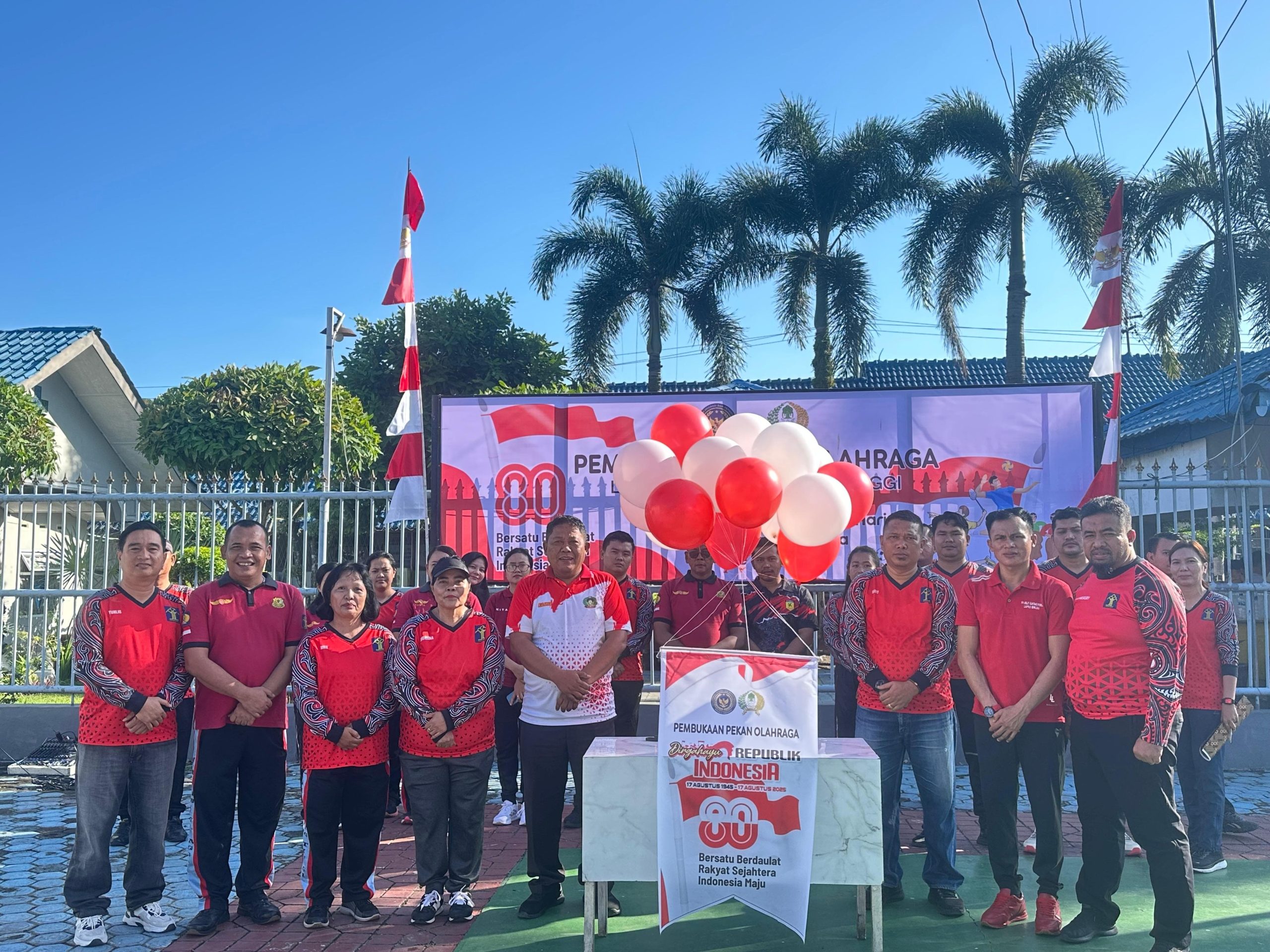 Lapas menggelar acara pembukaan Pekan Olahraga yang diikuti oleh pejabat struktural dan jajaran petugas juga seluruh Warga Binaan Pemasyarakatan (WBP).