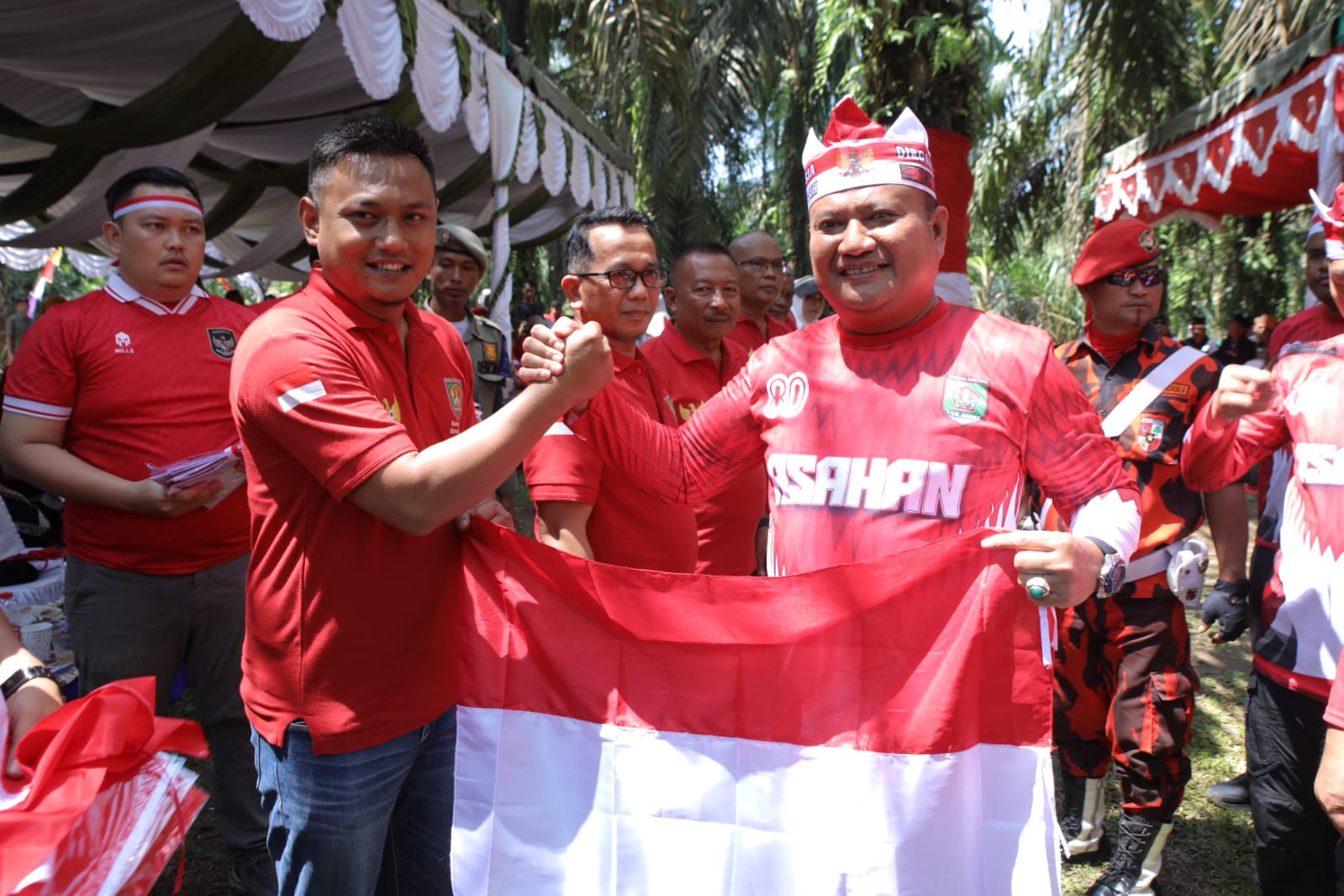 Kegiatan diawali dengan penyerahan Bendera Merah Putih secara simbolis kepada Kepala Desa se-Kecamatan Bandar Pulau oleh Bupati Asahan bersama Forkopimda dan tamu kehormatan. (rel)