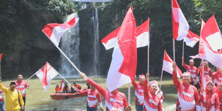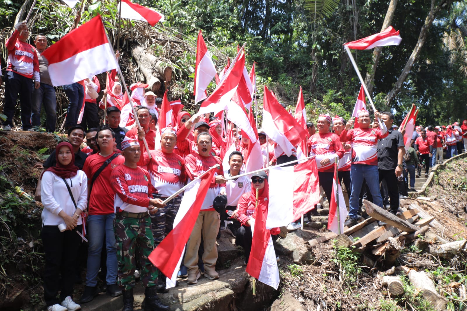 ASAHAN – Menyambut Hari Ulang Tahun (HUT) ke-80 Kemerdekaan Republik Indonesia (RI), kawasan Wisata Air Terjun Simonang-Monang di Desa Perkebunan Padang Pulau, Kecamatan Bandar Pulau, dipenuhi warna Merah Putih, Sabtu (09/08/2025).