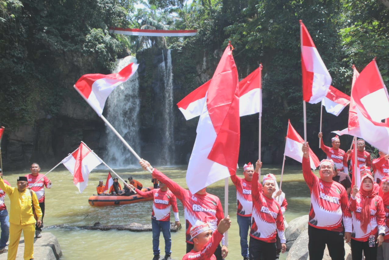 Sebanyak 500 bendera Merah Putih dikibarkan di area wisata, termasuk satu bendera raksasa berukuran panjang 80 meter dan lebar 80 centimeter yang membentang megah di antara gemuruh air terjun.