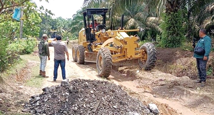Untuk Perbaikan jalan perkebunan PT. BSP Tbk Kisaran memberikan bantuan berupa batu pecah petrun sebanyak 47 Ton untuk perkerasan badan jalan dengan menurunkan 2 alat berat berupa Gleder dan Bomak.