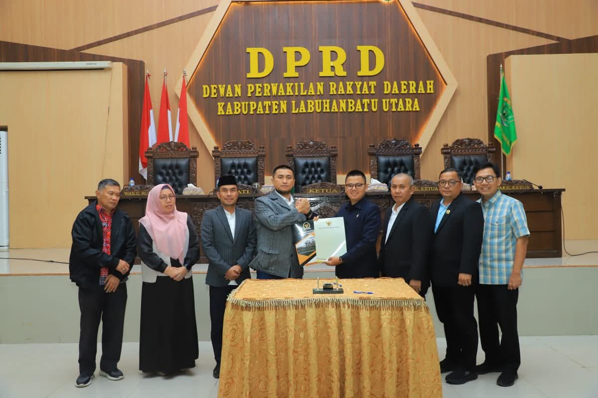 TASLABNEWS, LABURA-Bupati Labuhanbatu Utara (Labura), Dr H Hendriyanto Sitorus, bersama Wakil Bupati Dr H Samsul Tanjung, menghadiri Rapat Paripurna Pengesahan Rancangan Peraturan Daerah (Ranperda) tentang Perubahan Anggaran Pendapatan dan Belanja Daerah (P-APBD) Tahun Anggaran 2025.
