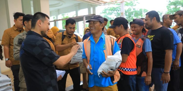 TASLABNEWS, LABURA- Bupati Labuhanbatu Utara (Labura), Dr. Hendri Yanto Sitorus membagikan ratusan paket sembako kepada abang becak, sopir angkot, pak ogah, serta tukang parkir di Kecamatan Kualuh Hulu dan Kualuh Selatan, Senin (1/9/2025) di halaman rumah dinas bupati.