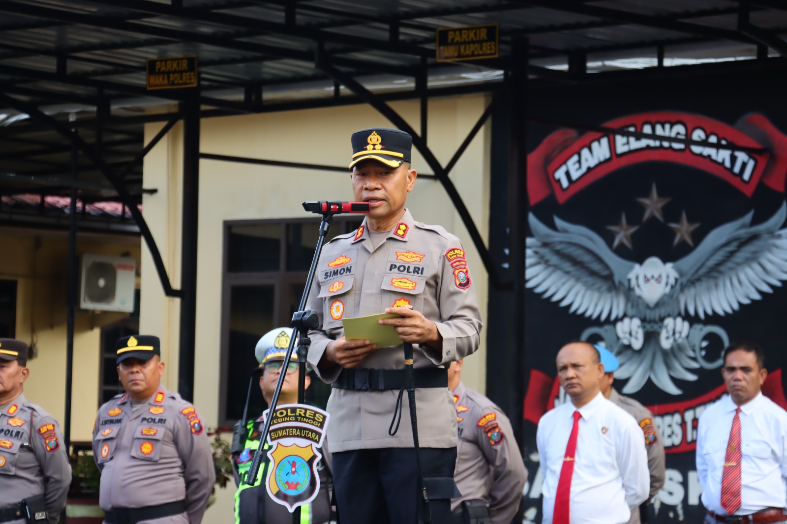 Kegiatan dilakukan di lapangan Mapolres Tebing Tinggi. Tampak Kapolres Tebing Tinggi AKBP Drs. Simon Paulus Sinulingga, S.H. memimpin jalannya upacara dengan penuh makna. Upacara juga dihadiri oleh Waka Polres Kompol Rudi Syahputra, S.Kom, para PJU dan personel Polres Tebing Tinggi.