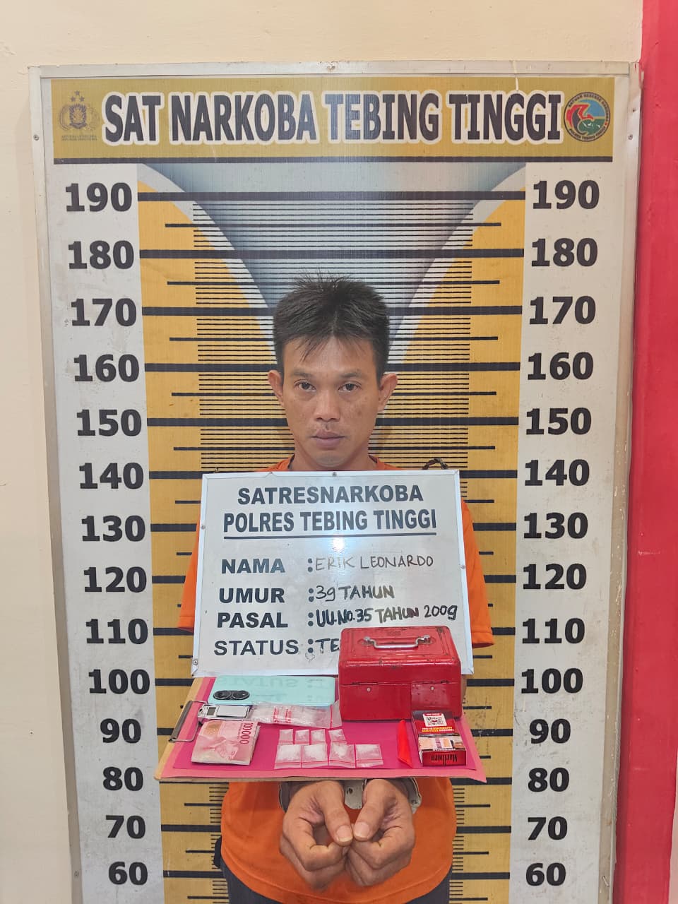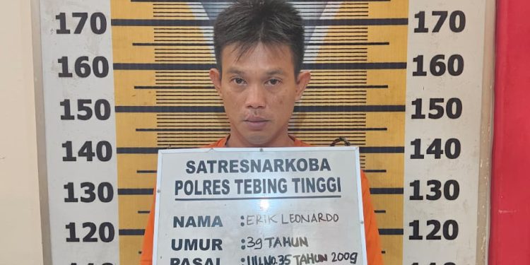 TEBING TINGGI, TASLABNEWS.COM-Seorang pria berinisial EL alias Erik (39) ditangkap personel Satresnarkoba saat berada di rumahnya.
