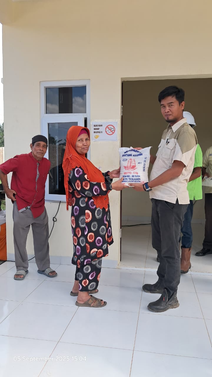 BATUBARA,TASLABNEWS.COM-Melalui program Corporate Social Responsrinity (CSR), PKS PT SAS menyalurkan 85 paket beras kemasan 5 kg kepada warga Desa Tanjung Gading, Kecamatan Sei Suka, Kabupaten Batubara, khususnya warga Dusun Tanjung Mulia dan Dusun Kandis yang berada di daerah operasional PKS PT SAS, Jumat (19/9/2025).