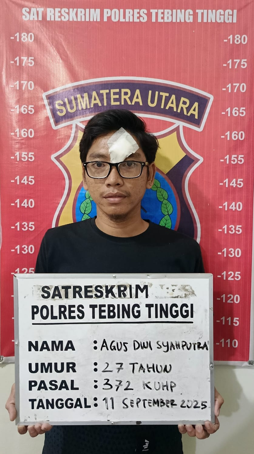 TEBING TINGGI, TASLABNEWS.COM-Personel Satreskrim Polres Tebing Tinggi berhasil membekuk seorang pria berinisial ADS alias Agus (27) yang merupakan terduga pelaku penggelapan sepedamotor.