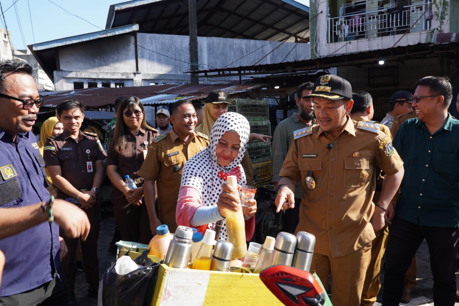 Kedatangan Wali Kota bersama rombongan disambut antusias oleh para pedagang dan pembeli.