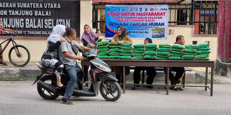 TASLABNEWS, TANJUNGBALAI – Polres Tanjungbalai melalui Polsek Tanjungbalai Selatan (TBS) melaksanakan Gerakan Pangan Murah (GPM). Dalam beberapa jam saja, beras dan minyak goreng pada pelaksanaan GPM yang dilaksanakan Polsek Tanjungbalai Selatan, Sabtu (27/9) pukul 09.00 WIB itu, langsung habis di borong warga.
