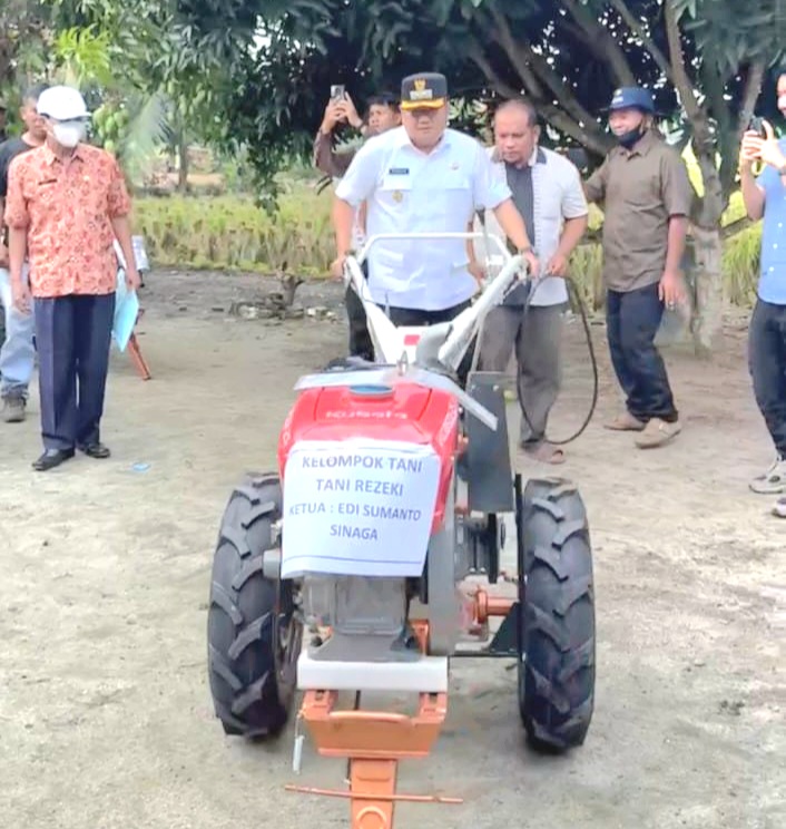 “Melalui bantuan mekanisasi pertanian baik pra maupun pasca panen dapat membantu memanfaatkan waktu tanam, karena tertabasnya ketersediaan air, mengurangi tenaga kerja dan menjaga kualitas hasil panen. Serta memanfaatkan limbah pertanian untuk pakan ternak, sehingga budidayanya akan memberikan hasil sepadan,” jelas wakil Bupati Asahan.