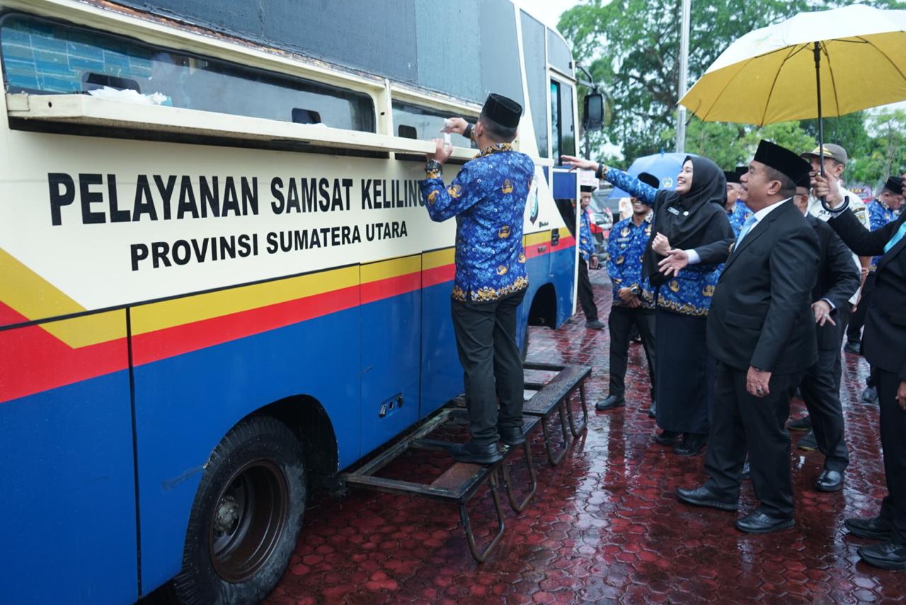 Tampak hadir Wakil Bupati Asahan, Sekretaris Daerah Kabupaten Asahan, Asisten, Staff Ahli, OPD, Kepala UPT Samsat Asahan, Camat, ASN serta hadirin lainnya.