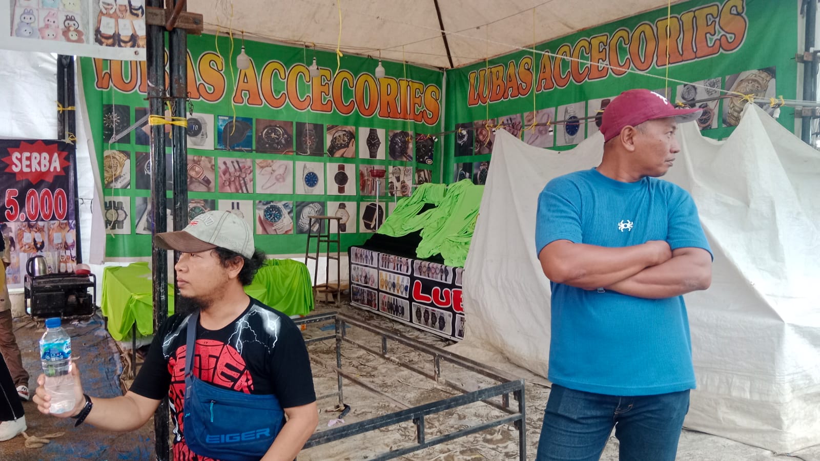 Dari pantauan awak media di lapangan, Minggu (05/10/2025) sore, tampak tenda tempat jualan korban, masih terdapat barang jualan yang tertumpuk dan masih rapi di dalam dus besar.