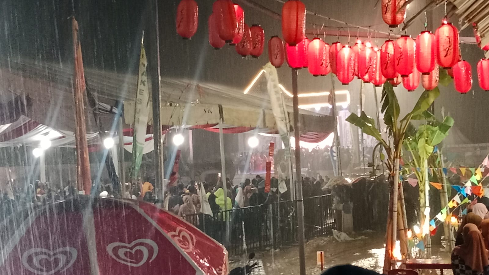 Dari pantuawan walau di guyur hujan lebat tanpak warga masih antusias menyaksikan pagelaran seni suku Jawa, bahkan tampak pengunjung mengunakan baleho untuk menutupi tubuh agar tidak terkena hujan.