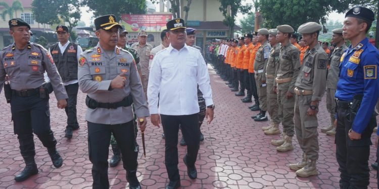TASLABNEWS – Dalam upaya memperkuat kesiapsiagaan menghadapi potensi bencana di wilayah Kabupaten Asahan, Wakil Bupati Asahan Rianto, S.H., M.A.P. menghadiri Apel Kesiapan Tanggap Darurat Bencana di halaman Mapolres Asahan, Rabu (05/11/2025).