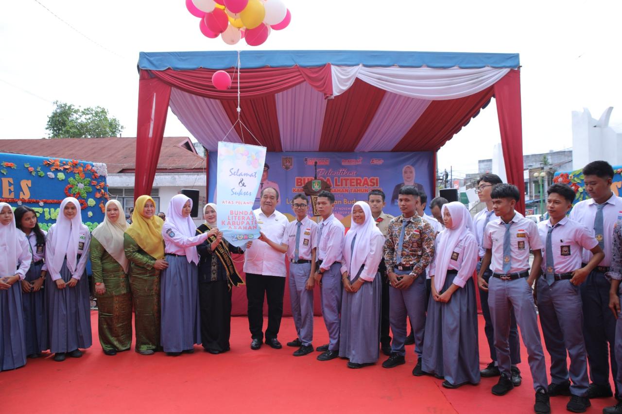 Bupati Asahan, Taufik Zainal Abidin, S.Sos., M.Si., kemudian secara resmi melantik Ny. Yusnila Indriati Taufik ZA sebagai Bunda Literasi Kabupaten Asahan Tahun 2025 sebelum menyampaikan sambutan yang menegaskan komitmen pemerintah daerah dalam memperkuat budaya baca.