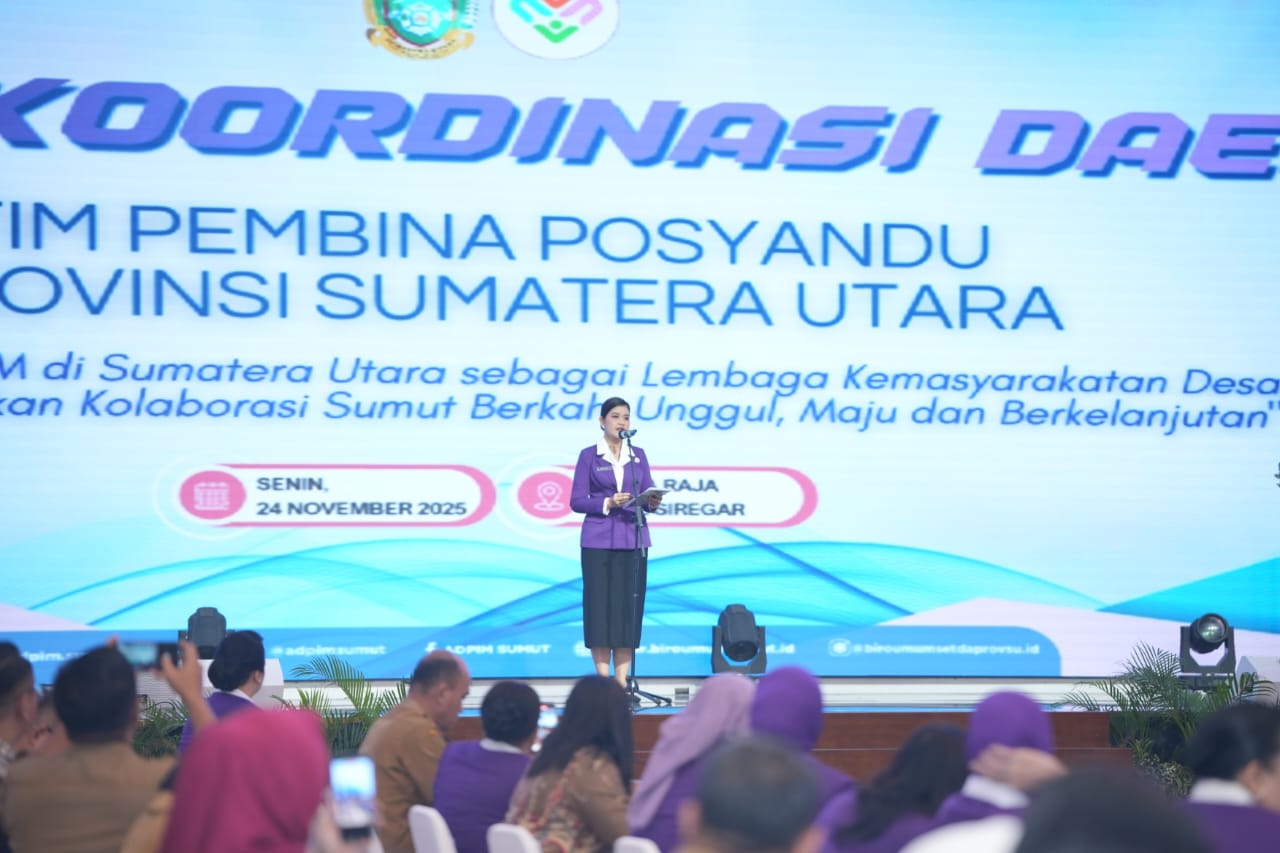 Rakorda yang dibuka oleh Ketua TP Posyandu Sumut, Ny. Kahiyang Ayu Bobby Nasution, menekankan bahwa Posyandu perlu ditata ulang sebagai lembaga layanan masyarakat yang memiliki kepastian hukum, struktur organisasi yang jelas, SOP baku, mekanisme pelaporan yang terstandarisasi, serta integrasi lintas sektor.