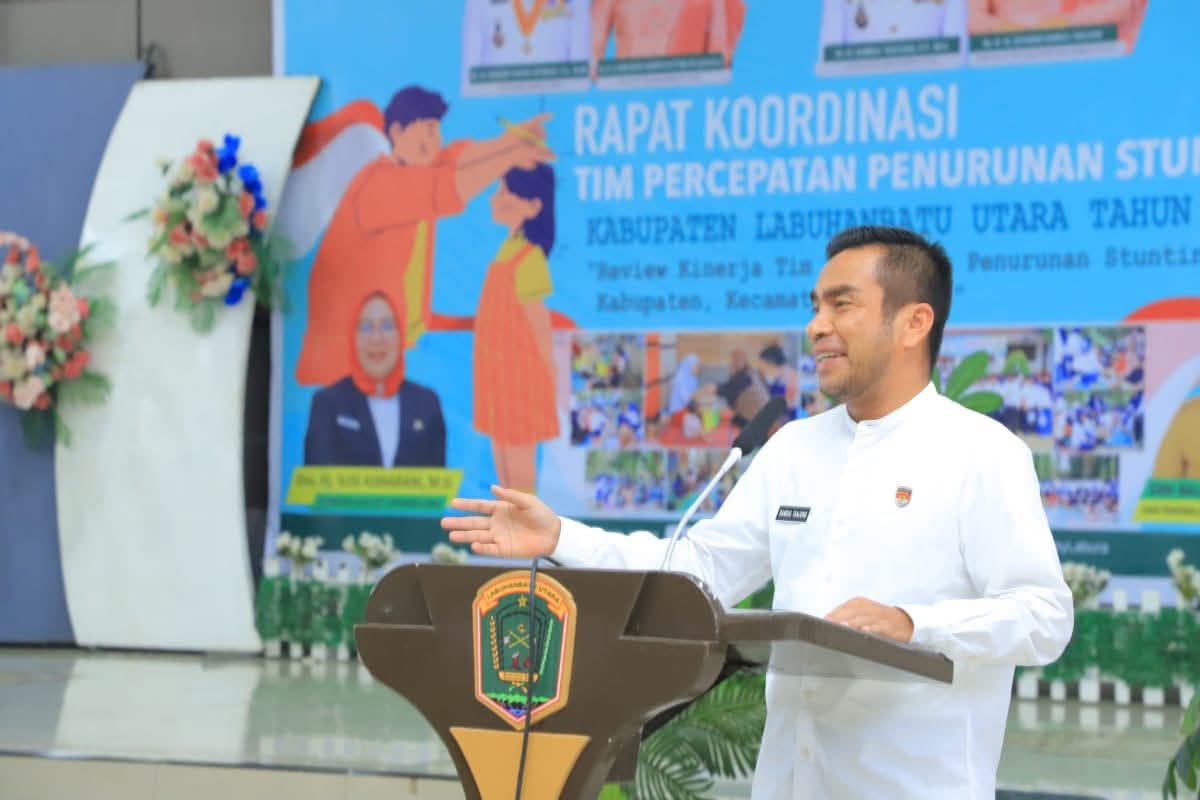 TASLABNEWS, LABURA-Pemerintah Kabupaten Labuhanbatu Utara (Labura) menggelar Rapat Koordinasi Tim Percepatan Penurunan Stunting (TPPS) Tahun 2025 di aula Ahmad Dewi Syukur, Rabu (5/11/2025).