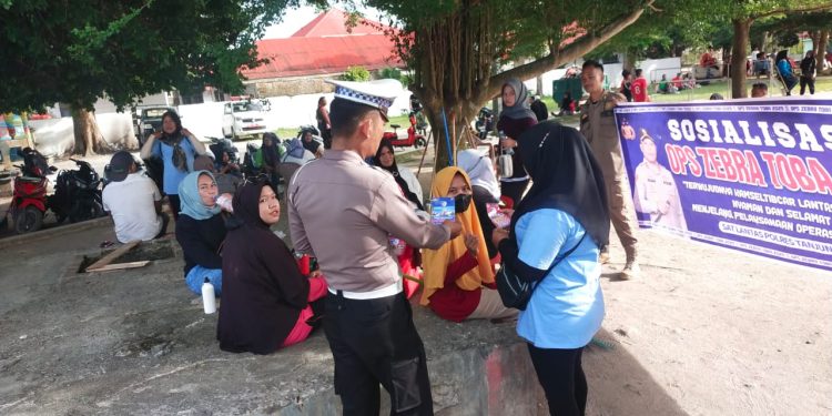 “Hari ini kami membagikan brosur dan menempelkan stiker himbauan Operasi Zebra Toba 2025. Kami ingin masyarakat tahu bahwa operasi ini masih berlangsung hingga tanggal 30 November 2025 nanti”, ujar AKP Demonstar.