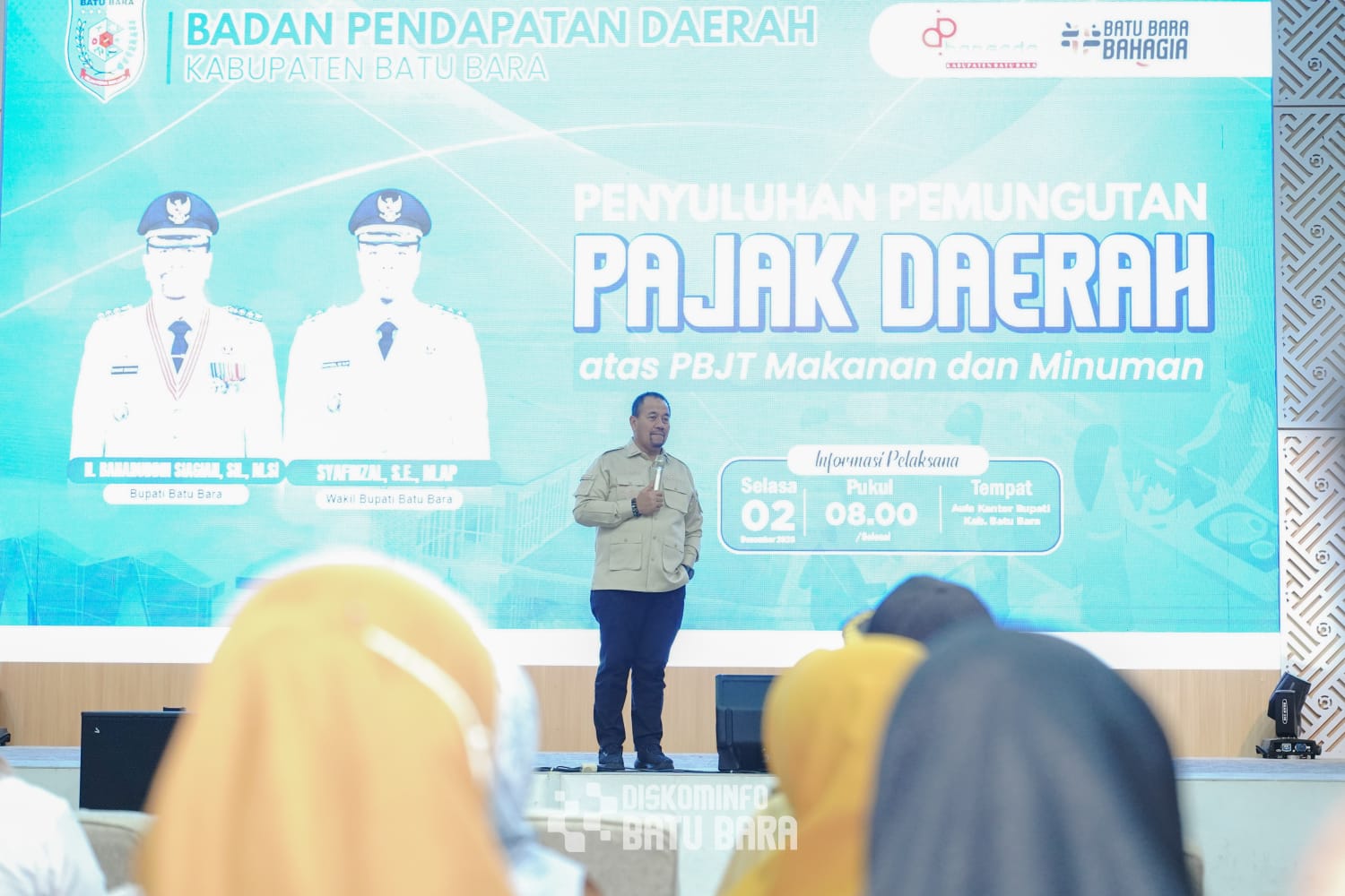BATUBARA,TASLABNEWS.COM- Bupati Batu Bara H Baharuddin Siagian SH MSi menghadiri penyuluhan mekanisme pemungutan Pajak Barang dan Jasa Tertentu (PBJT) atas makanan dan minuman yang bersumber dari dana APBN, APBD, dan APBDes sesuai aturan perundang-undangan.