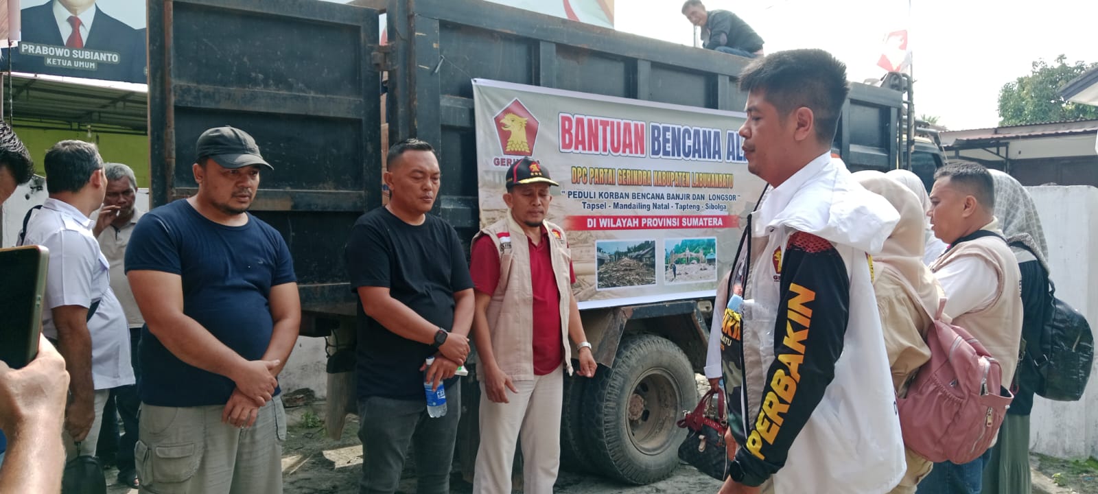 TASLABNEWS, LABUHANBATU – Dewan Pimpinan Cabang (DPC) Partai Gerindra Kabupaten Labuhanbatu menyalurkan bantuan untuk korban longsor dan banjir di Tapanuli Selatan, Mandailing Natal, dan Sibolga.