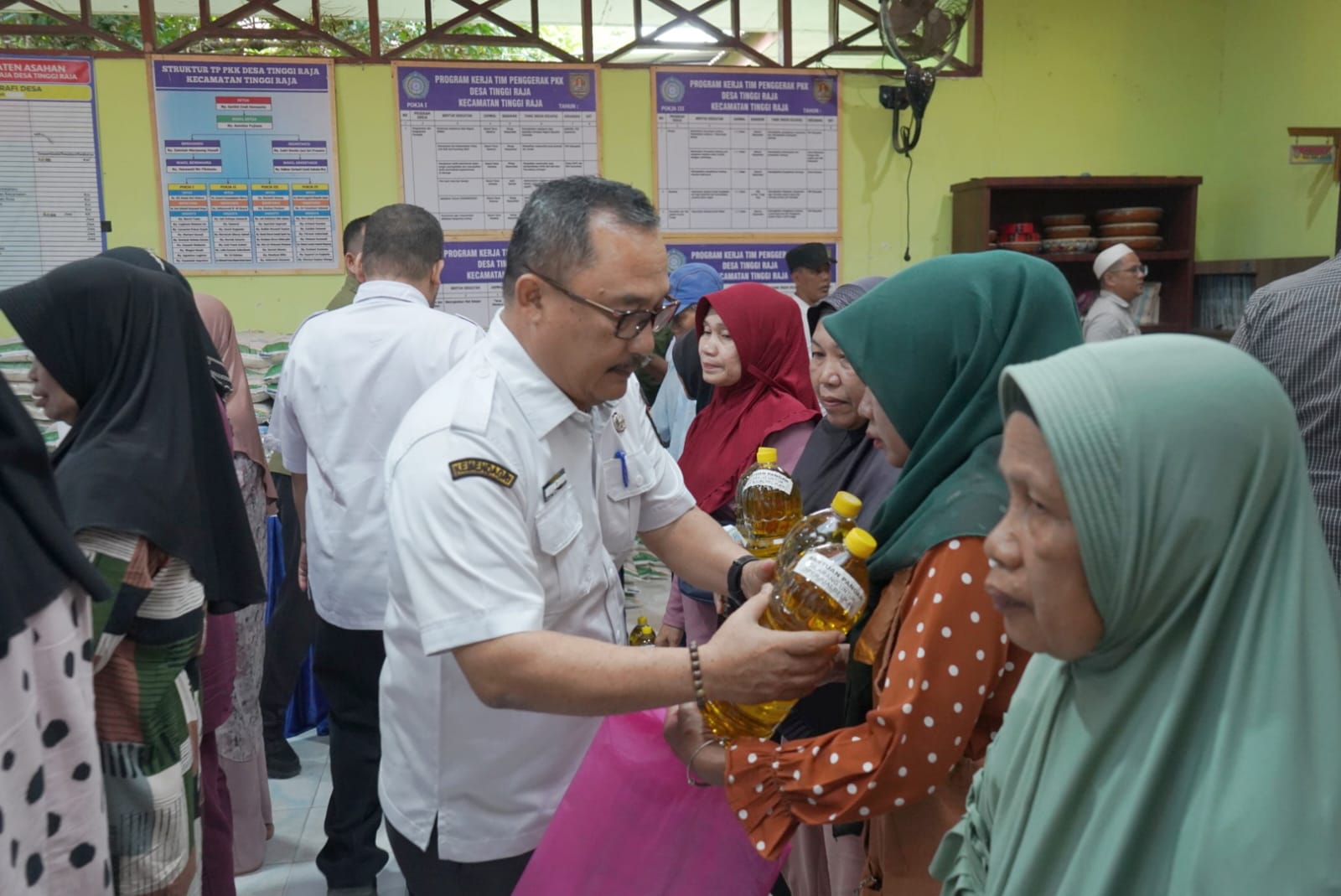 Di berbagai titik penyaluran, termasuk Halaman Balai Desa Suka Damai Kecamatan Pulo Bandring yang dipimpin Bupati dan Kantor Desa Tinggi Raja Kecamatan Tinggi Raja yang dipimpin Wakil Bupati, masyarakat menerima bantuan pangan berupa 20 kilogram beras (10 kg per bulan) serta 4 liter minyak goreng (2 liter per bulan) untuk alokasi Oktober–November 2025.