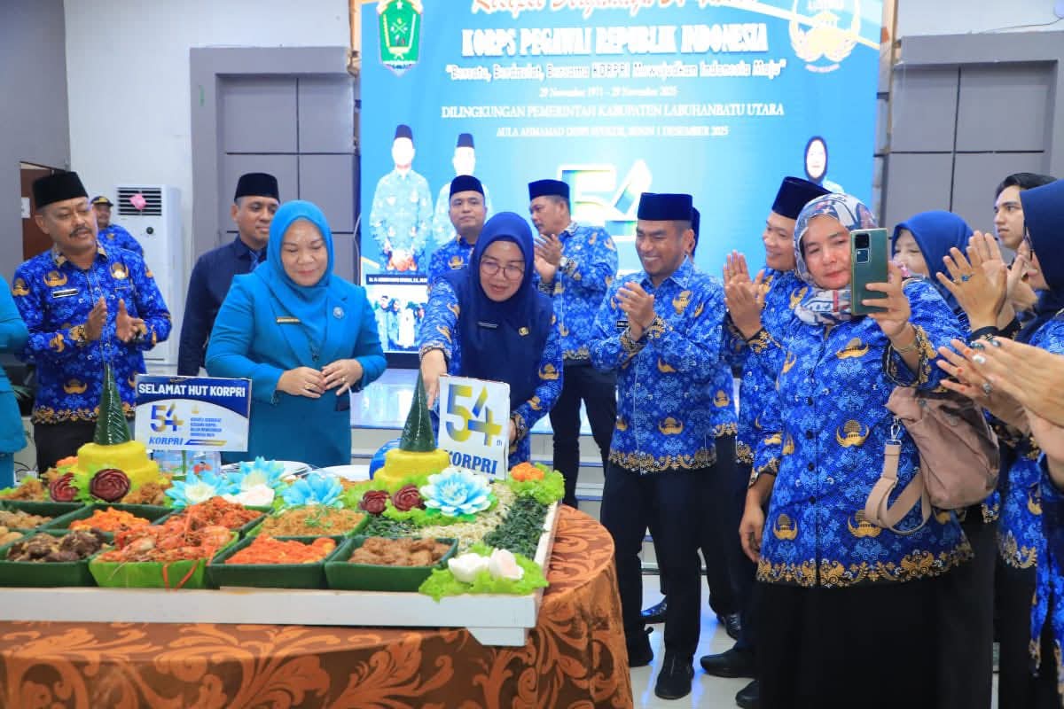 TASLABNEWS, LABURA- Wakil Bupati (Wabup ) Labuhanbatu Utara (Labura), Dr H Samsul Tanjung, memimpin upacara peringatan Hari Ulang Tahun ke-54 KORPRI Tahun 2025 di halaman kantor bupati Labuhanbatu Utara, Aek Kanopan, Senin (1/12/2025).