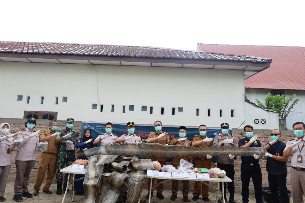 “Pada hari ini kita akan memusnahkan barang tangkapan yang mengandung virus, ini adalah hasil penangkapan Satuan Pelayanan Karantina Hewan, Ikan dan Tumbuhan Tanjungbalai-Asahan beberapa waktu yang lalu. Tindakan pemusnahan menjadi upaya nyata Karantina dalam pencegahan risiko masuk dan tersebarnya hama/penyakit di wilayah Tanjungbalai-Asahan. Hal ini juga Sesuai dengan Undang-Undang Nomor 21 Tahun 2019 tentang Karantina Hewan, Ikan, dan Tumbuhan, yang menyebutkan bahwa Karantina mempunyai kewenangan untuk menahan, menolak, dan memusnahkan media pembawa (komoditas) yang tidak memenuhi syarat saat dilalulintaskan melalui tempat pemasukan/pengeluaran yang telah ditetapkan”, ujar Kepala Balai Besar Karantina Hewan Ikan dan Tumbuhan Sumatera Utara, N. Prayitno Ginting.