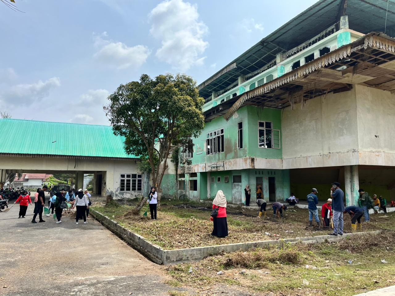 “Sebagai bentuk Kolaborasi antar OPD, kita libatkan Dinas Lingkungan Hidup, Dinas PUTR, Disporapar dan perangkat OPD lainnya. Ini kolaborasi bersama untuk membersihkan dan merapikan Gedung Serbaguna,” jelasnya.