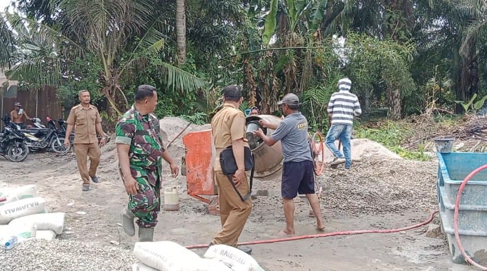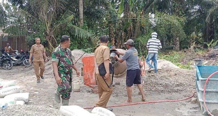 Kepala Desa Serdang Guntur Gunawan tampak memantau langsung pembangunan gedung Koperasi Desa Merah Desa Serdang Selasa (6/1/2026).