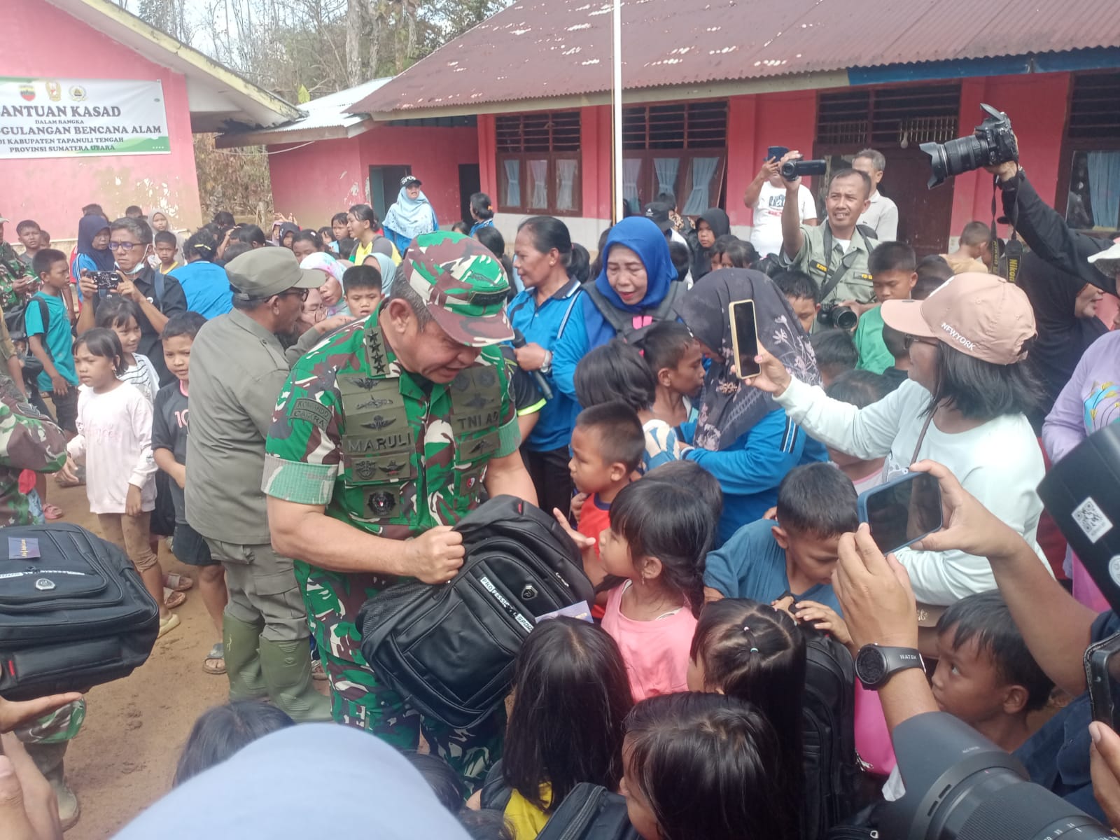 Bantuan diberikan saat Kasad Jenderal TNI Maruli Simanjuntak,M.Sc beserta Rombongan menyambangi Gedung SDN 152982 Tukka, yang menjadi salah satu Sekolah yang terkena Bencana Alam Banjir dan Longsor. Berlokasi di Jalan Humala Tambunan, Kelurahan Tukka, Kecamatan Tukka, Kabupaten Tapanuli Tengah (Tapteng), Jumat (09/01/2026).