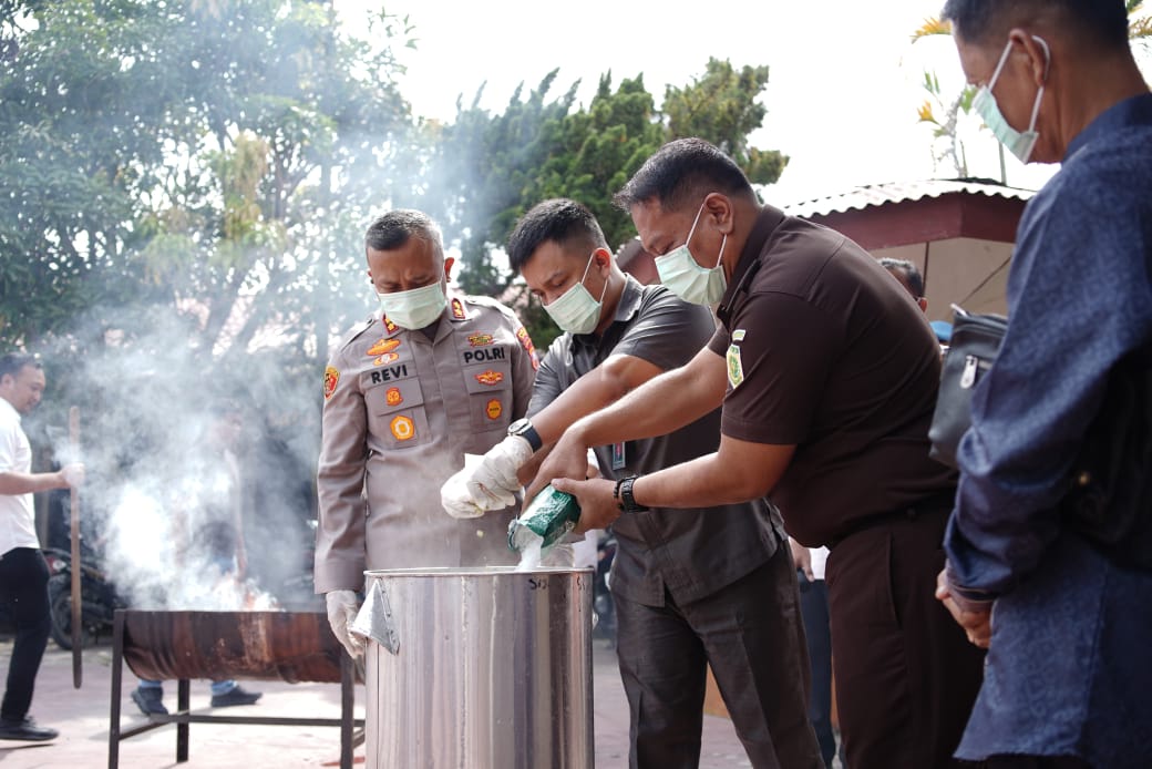 Pemusnahan itu dipimpin langsung Kapolres Asahan, AKBP Revi Nurvelani SH SIK MH didampingi jajaran Satres Narkoba.