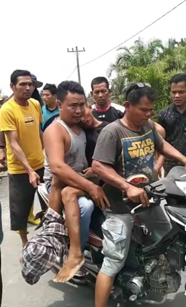 Warga sempat berteriak mengingatkan korban, namun sepertinya ia sedang melamun dan tidak mendengar teriakan warga. Warga yang melihat kejadian langsung memberikan bantuan membawanya ke rumah sakit dengan menggunakan sepedamotor.