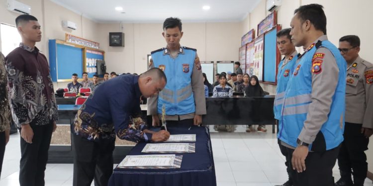 Kegiatan dilanjutkan dengan penandatanganan naskah Pakta Integritas secara simbolis di tingkat Polres. Penandatanganan ini menjadi bukti tertulis bahwa seluruh elemen pendukung seleksi di Polres Tanjung Balai menolak segala bentuk praktik KKN (Korupsi, Kolusi, dan Nepotisme).